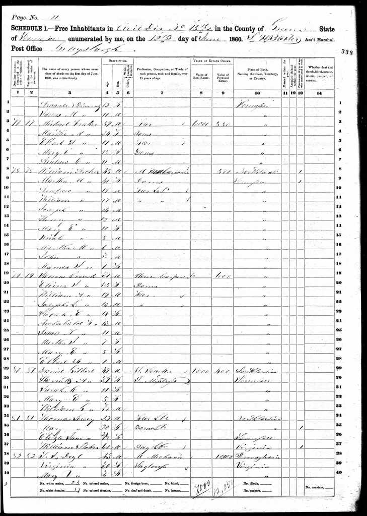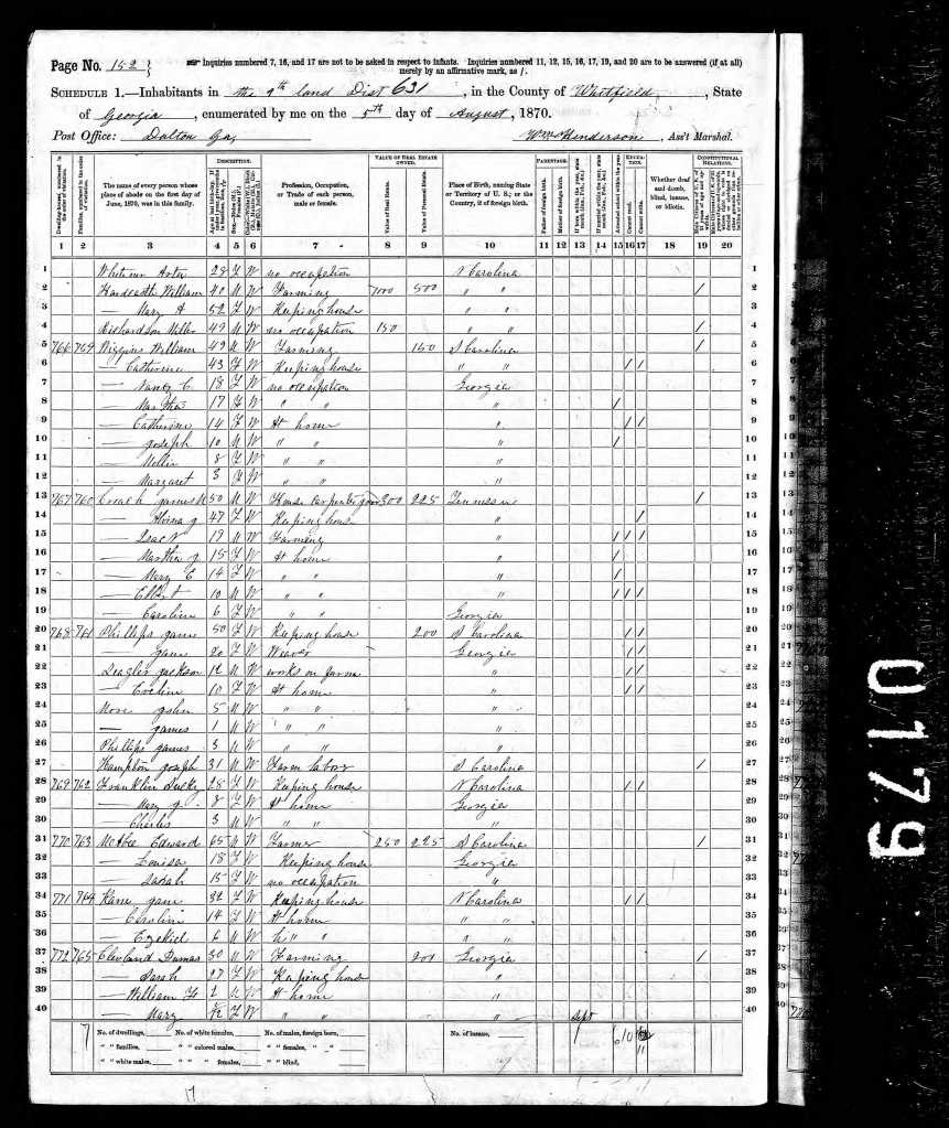 Thomas is found in the 1920 US Census in Oklahoma, county of Pottawatomie, township of Davis, District 0208, page 2a, as a lodger in dwelling 25, working as a flour packer at a flour mill. He is living with Ed and Pearl Long. Pearl is the daughter of Thomas’s step father William James. Also in the house is Thomas’ aunt Tennie McConnell, the older sister of Thomas’ mother Susannah.