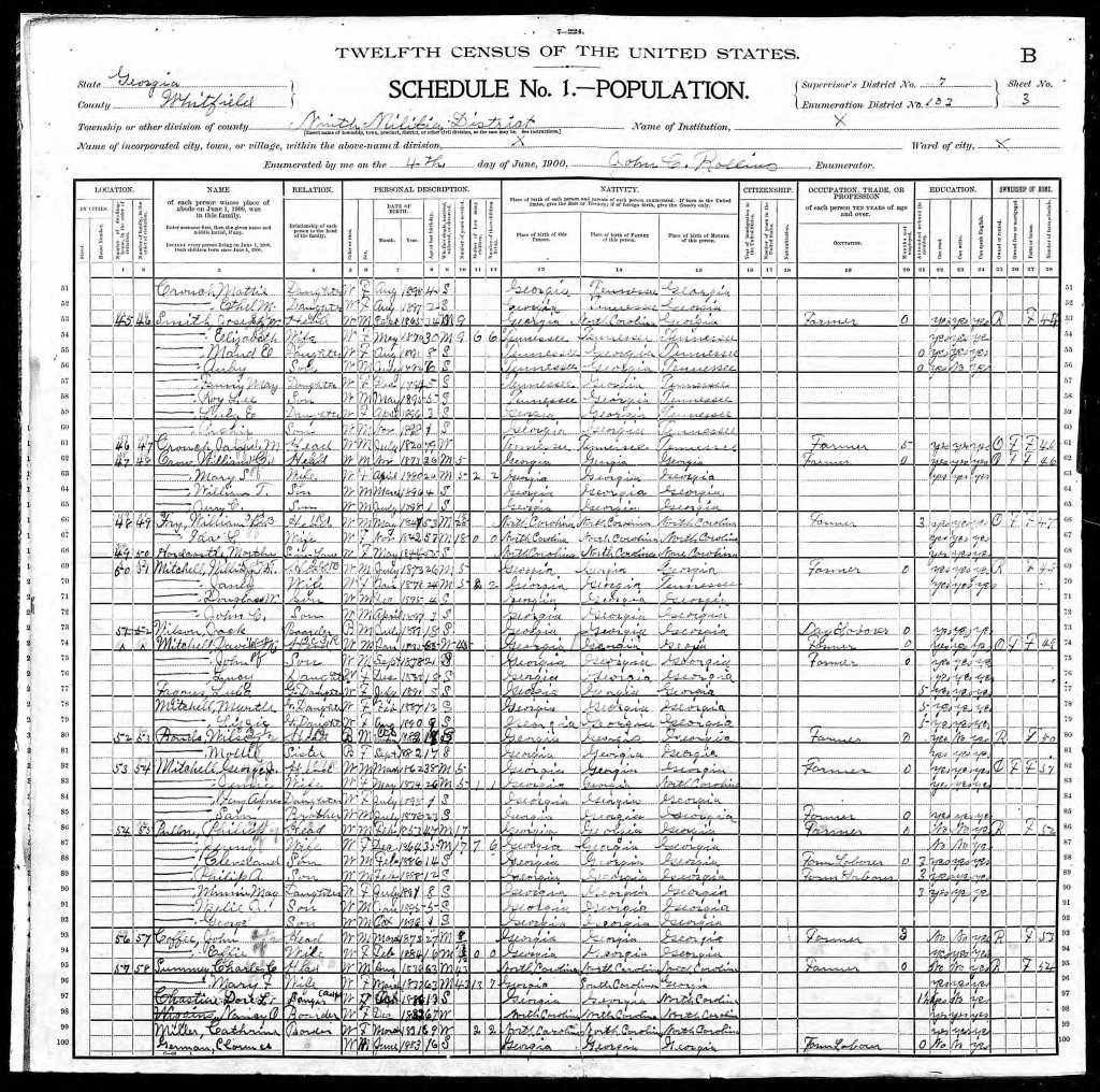 Thomas is found in the 1910 US Census in the state of Oklahoma, county of Hughes, township of Newburg, district 0111, page 5a, in dwelling number 86. Also listed is his father, mother, older brother Monroe, and younger brother Joseph.